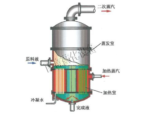 所組成的多效蒸發(fā)器的溶液物料的進出可以并聯(lián)運行,也可以串聯(lián)運行,可以連續(xù)進出料運行也可以連續(xù)進料間隙出料運行。